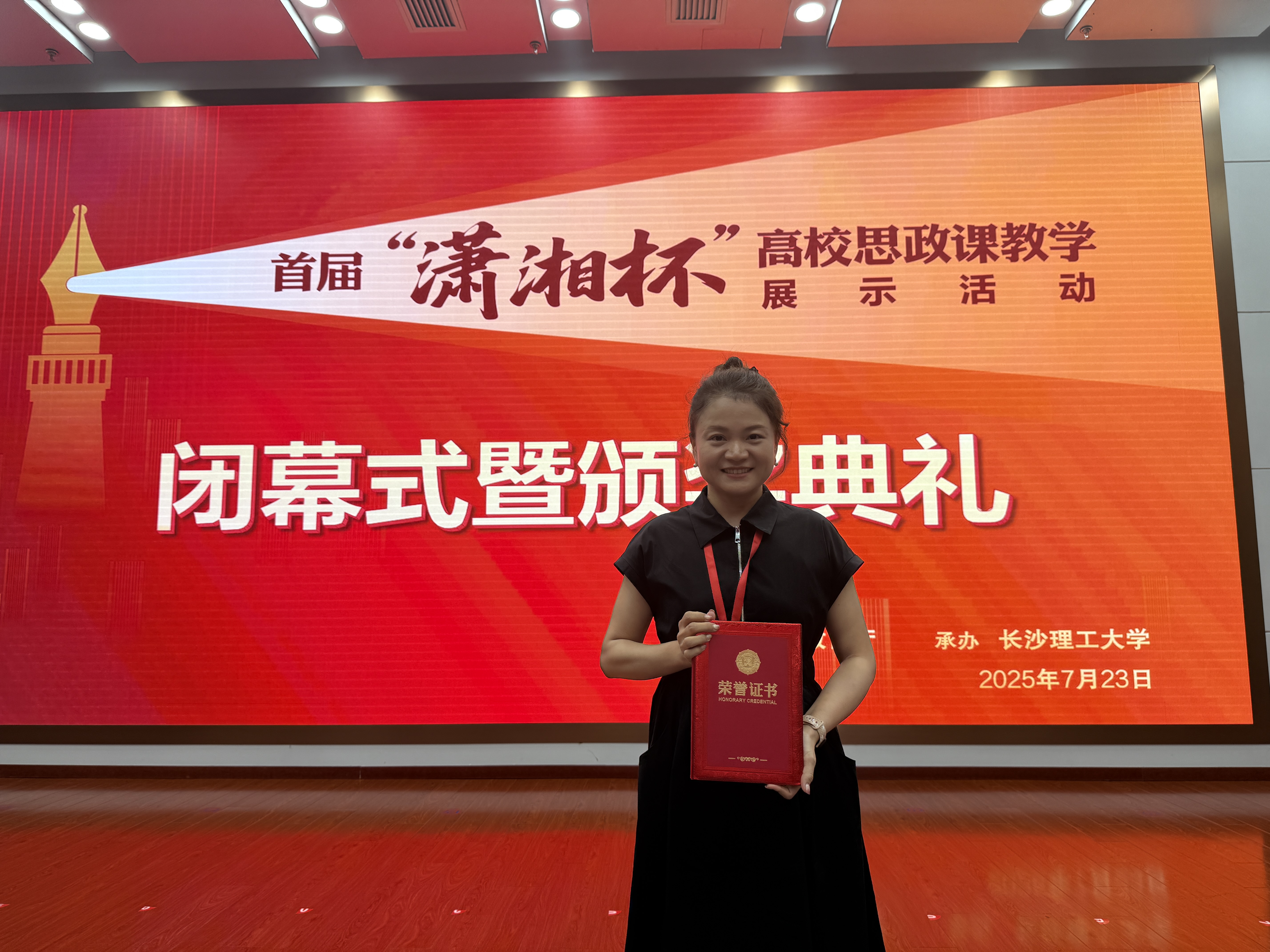 近日,我院韩琳老师在湖南省首届“潇湘杯”高校思政课教学展示活动中,荣获本科“习近平新时代中国特色社会主义思想概论”组一等奖